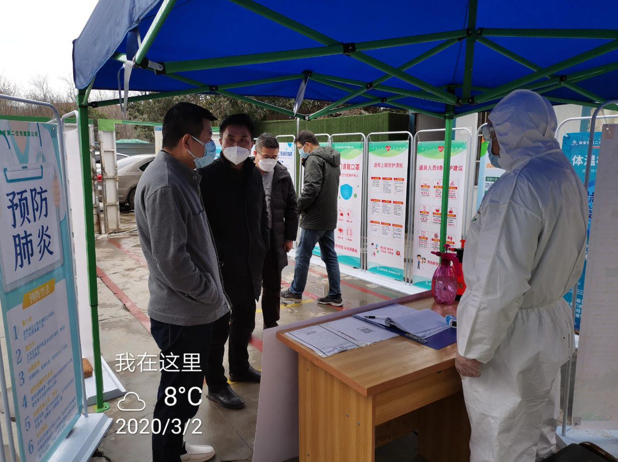 3月2日上午市住建局保障處處長王煒鵬同志到丈八保障房項目部實地檢查項目復工復產和疫情防控工作部署情況。西安市房地產經營二公司黨委副書記王備戰(zhàn)同志、西安市第二住宅建筑公司黨委書記吳高祥等同志陪同。
